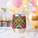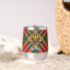 Clan MacGill crest badge surrounded by a strap and buckle over tartan background. Custom text on both sides.