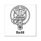 Clan MacGill crest badge surrounded by a strap and buckle. Custom text.