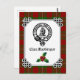 Stylish holiday card features Scottish Clan MacGregor crest badge and customisable text, with festive holly and Celtic knot frame on tartan background