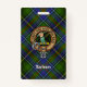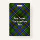 Clan MacInnes crest badge surrounded by a strap and buckle over tartan background. Custom text.