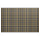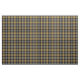 Fabric in the family tartan for Clan MacIsaac, a traditional Scottish plaid pattern dated to 2009 in black, tan, and gray, with yellow accents. Pattern repeats every 4". Special order smaller or larger scale via https://plaidwerx.com/contact.htm