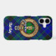 Clan MacKay crest badge surrounded by a strap and buckle over tartan background. Custom text.