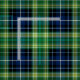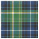 Fabric in the family tartan for Clan MacKellar, a traditional Scottish plaid pattern dated to 1964 in green, royal blue, and black, with bright yellow, sky blue, and creamy white accents. Pattern repeats every 4". Special order smaller or larger scale via https://plaidwerx.com/contact.htm