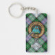 Clan MacKenzie crest badge surrounded by a strap and buckle over dress tartan background. Custom text on both sides.
