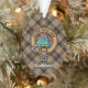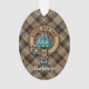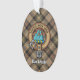 Clan MacKenzie crest badge surrounded by a strap and buckle over brown hunting tartan background. Custom text on both sides.