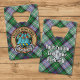 Clan MacKenzie crest badge surrounded by a strap and buckle over dress tartan background. Custom text on both sides.