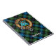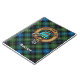 Clan MacKenzie crest badge surrounded by a strap and buckle over tartan background. Custom text.