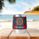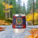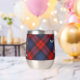 Clan MacLachlan crest badge surrounded by a strap and buckle over tartan background. Custom text on both sides.