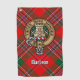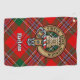 Clan MacLean crest badge surrounded by a strap and buckle over tartan background. Custom text.