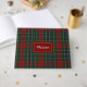 Colourful all purpose guest book done in the classic green, blue, red, yellow, black and white clan MacLean tartan plaid pattern. A red and gold tone text area, on the front of the book, has white custom text ready to personalise.