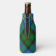 Clan MacLeod crest badge surrounded by a strap and buckle over green hunting tartan. Custom text.