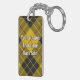 Clan MacLeod of Lewis crest badge surrounded by a strap and buckle over tartan background. Custom text on both sides.