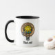Clan MacLeod of Lewis crest badge surrounded by a strap and buckle over tartan background. Custom text on both sides.