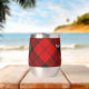 Clan MacLeod of Raasay crest badge surrounded by a strap and buckle over tartan background. Custom text on both sides.