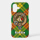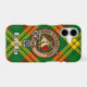 Clan MacMillan crest badge surrounded by a strap and buckle over tartan background. Custom text.