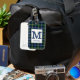 Luggage tag with the Clan MacNeil tartan, dated to 1831. Traditional Scottish plaid pattern in black, dark royal blue and forest green, with white and yellow gold highlights. Personalise with your initial and surname on a light coloured plate for easy legibility.