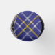 Clan MacPherson crest badge surrounded by a strap and buckle over blue dress tartan background. Custom text.