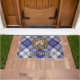 Clan MacPherson Crest over Blue Dress Tartan Doormat
