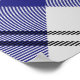Clan MacPherson crest badge surrounded by a strap and buckle over blue dress tartan background. Custom text.