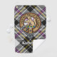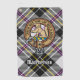 Clan MacPherson crest badge surrounded by a strap and buckle over dress tartan background. Custom text.