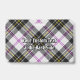 Clan MacPherson crest badge surrounded by a strap and buckle over dress tartan background. Custom text on both sides.