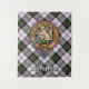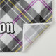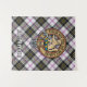 Clan MacPherson crest badge surrounded by a strap and buckle over dress tartan background. Custom text.