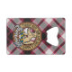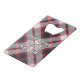 Clan MacPherson crest badge surrounded by a strap and buckle over hunting tartan background. Custom text on both sides.