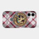 Clan MacPherson crest badge surrounded by a strap and buckle over hunting tartan background. Custom text.