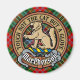 Clan MacPherson crest badge surrounded by a strap and buckle over tartan background. Custom text.