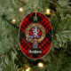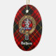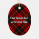 Clan MacQueen Crest over Tartan Ceramic Tree Decoration