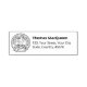 Clan MacQueen crest badge surrounded by a strap and buckle. Custom text fields for name and address.