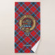Clan MacTavish crest badge surrounded by a strap and buckle over tartan background. Custom text on each towel.