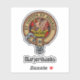 Clan Marjoribanks crest badge surrounded by a strap and buckle over tartan background. Custom text.