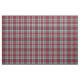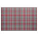 Fabric in the family tartan for Clan Metcalf, an intricate traditional plaid pattern in red, green, and light grey, with black and blue accents. Pattern repeats every 4". Special order smaller or larger scale via https://plaidwerx.com/contact.htm