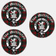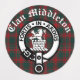 Stylish labels featuring Scottish Clan Middleton tartan plaid background with clan crest badge and customisable curved text overlay. Option to print as waterproof adhesive for plastic/glass or iron on for clothing and fabric