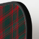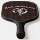 Stylish pickleball paddle featuring Scottish Clan Middleton tartan plaid background with white clan crest badge and text overlay