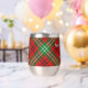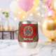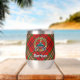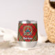 Clan Morrison crest badge surrounded by a strap and buckle over red tartan background. Custom text on both sides.