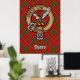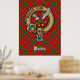 Clan Munro crest badge surrounded by a strap and buckle over tartan background. Custom text.