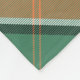 Clan Pollock crest badge surrounded by a strap and buckle over tartan background. Custom text.