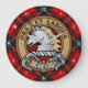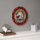 Clan Ramsay crest badge surrounded by a strap and buckle over red tartan background. Custom text.