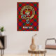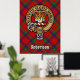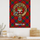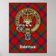 Clan Robertson crest badge surrounded by a strap and buckle over tartan background. Custom text.