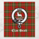 Bottle label with Scottish Clan Scott crest badge and text on tartan plaid background
