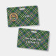 Clan Scott crest badge surrounded by a strap and buckle over green tartan background. Custom text on both sides.