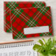 Clan Scott traditional red tartan with modern colours. Seamless pattern. Custom text.