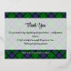 Clan Sinclair crest badge surrounded by a strap and buckle over hunting tartan background. Foil printed thank you card. Custom text.
