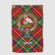 Clan Stewart or Stuart crest badge surrounded by a strap and buckle. Custom text.