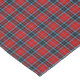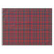 Tablecloth with a bright red, light blue, and black Scottishi tartan. Traditional Clan Thompson family plaid pattern from 1950, also called Thompson Red. Available in three sizes.