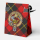 Clan Wallace crest badge surrounded by a strap and buckle over tartan background. Custom text and monogram.