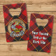 Clan Wallace crest badge surrounded by a strap and buckle over tartan background. Custom text on both sides.