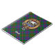 Clan Wood crest badge surrounded by a strap and buckle over tartan background. Custom text.